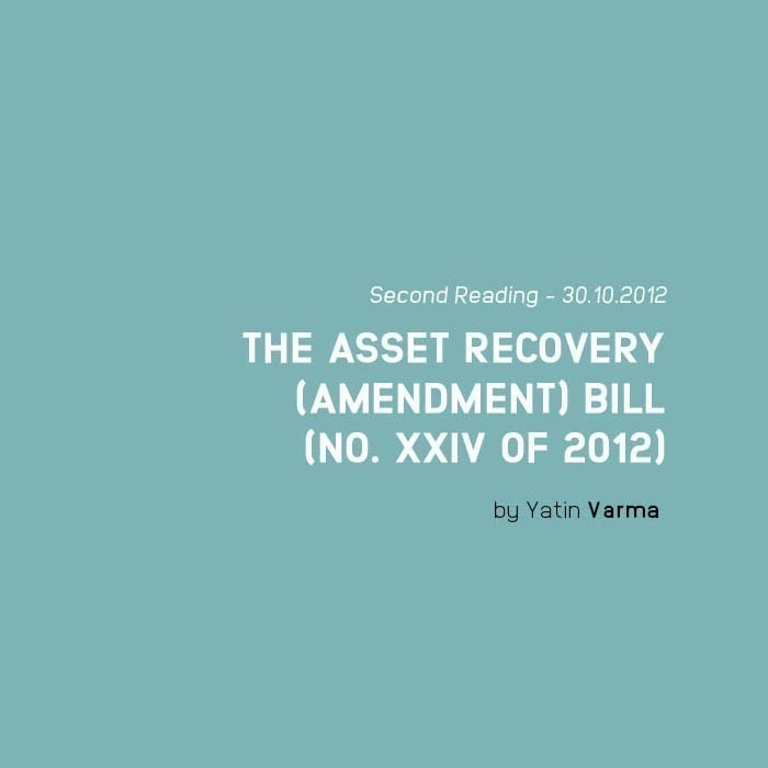 The Attorney General (Mr Y. Varma): Mr Speaker, Sir, I move that the Asset Recovery (Amendment) Bill (No. XXlV of 2012) be read a second time.